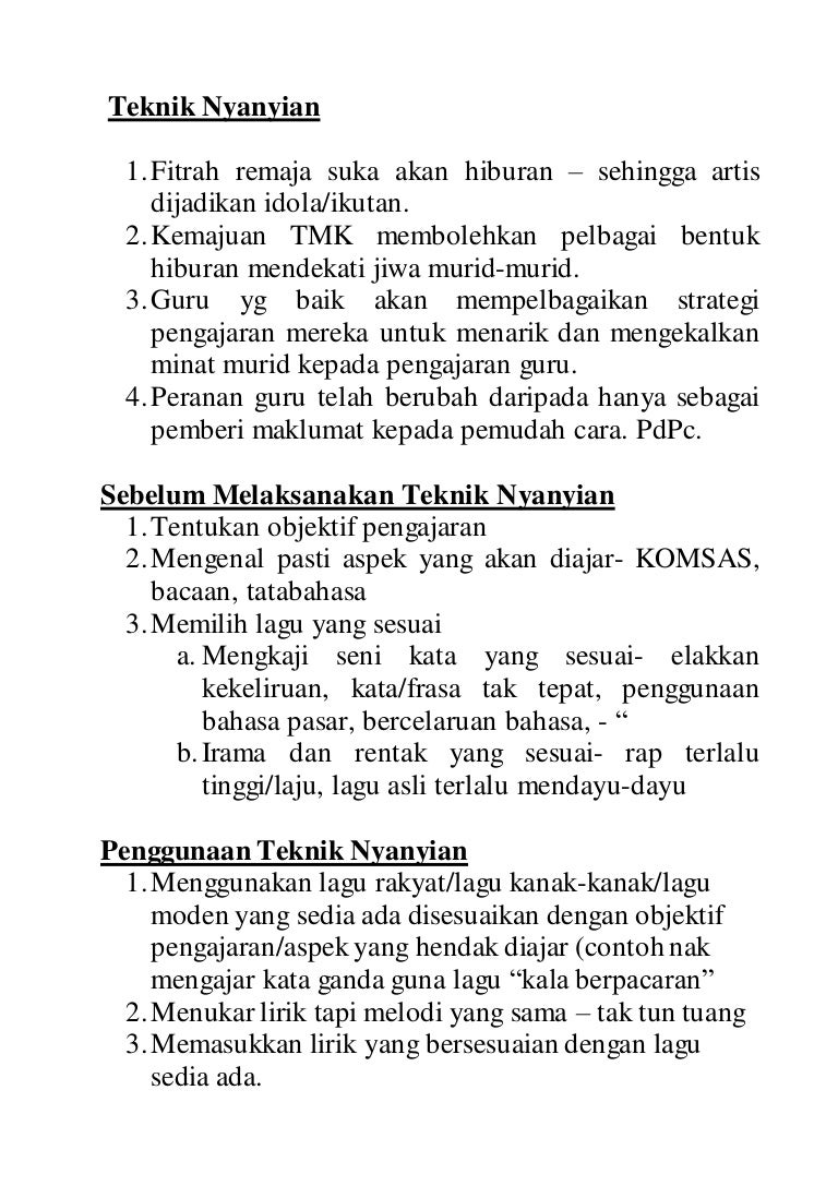 Teknik Nyanyian Meningkatkan Daya Ingatan Murid Pdf