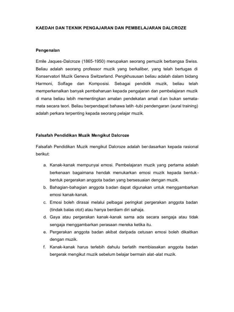 Kaedah Dan Teknik Pengajaran Dan Pembelajaran Dalcroze Pdf